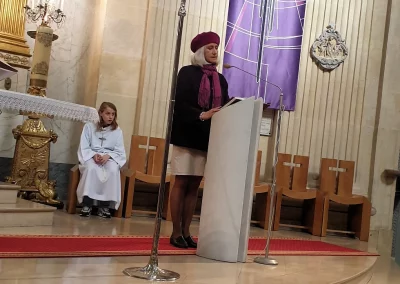 À l’issue de la messe, les fidèles se sont réunis sur le parvis de l’église pour déposer une gerbe de fleurs au pied du buste de Jean-Paul II. La commémoration s’est clôturée par la prière des litanies, conduite par Mme Dudek.