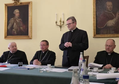 L’après‑midi, les directeurs des cinq unités gérées par la Fondation ont présenté leurs rapports et leurs projets pour l’année à venir : Mgr Dariusz Giers (Secrétariat administratif), le P. Mateusz Wójcik (Maison du Pèlerin à Rome), le P. Jan Strzałka (Résidence universitaire de Lublin), le P. Mirosław Cichoń (Centre de Documentation et d’Étude du Pontificat de Jean‑Paul II à Rome) et le P. Tomasz Podlewski (Bureau des Médias et des Événements).