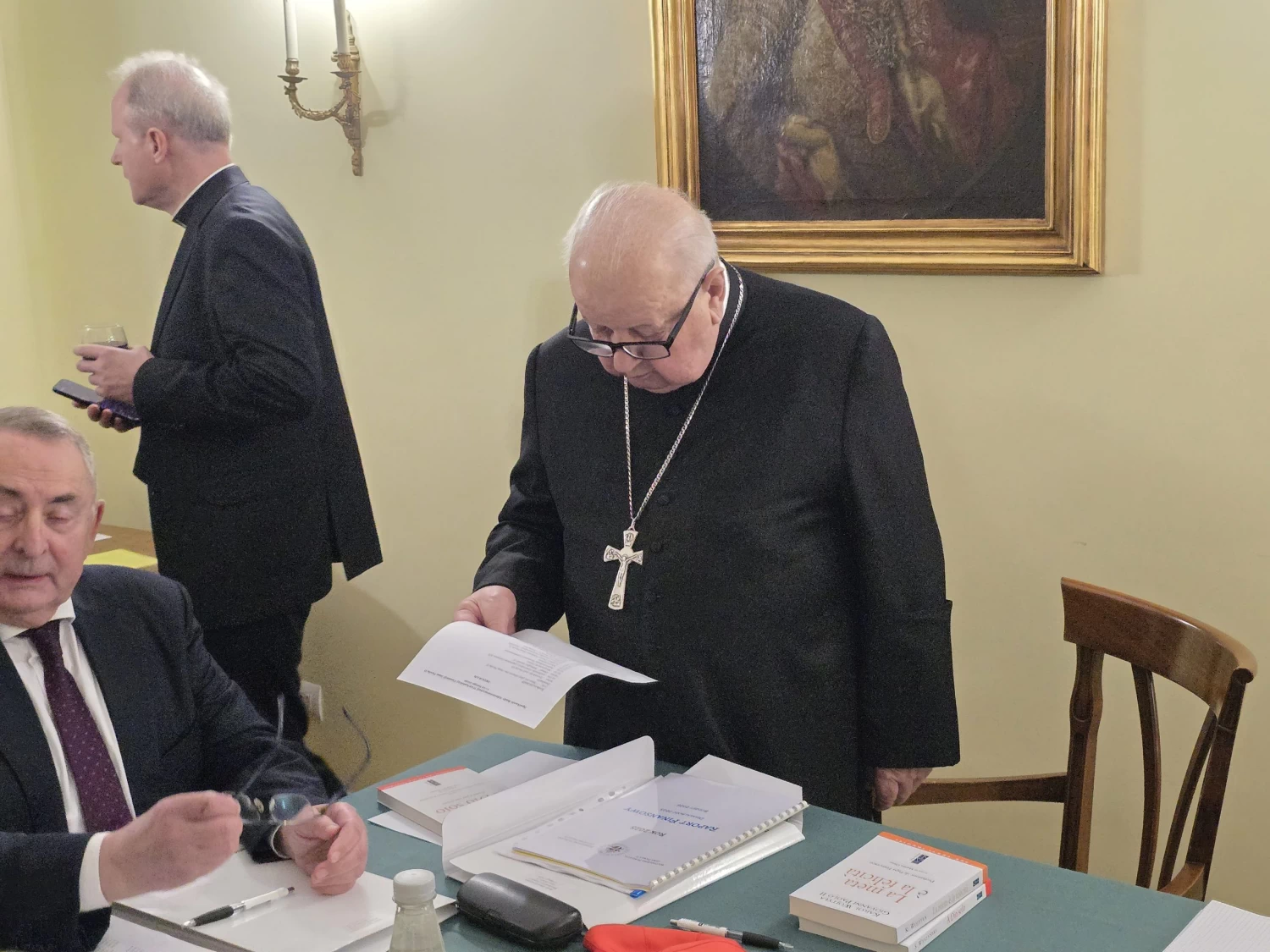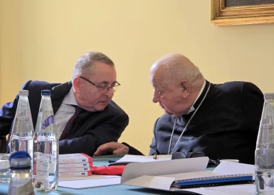 Conformément au Statut de la Fondation, le cardinal Stanisław Dziwisz est membre permanent du Conseil, tandis que l’archevêque métropolitain de Cracovie exerce en son sein ce que l’on appelle l’autorité supérieure. C’est pourquoi, lors de la session qui vient de s’achever, le cardinal Grzegorz Ryś — nommé il y a quelques mois par le Saint‑Père comme nouveau pasteur de l’archidiocèse de Cracovie — a participé pour la première fois. Ont également pris part à l’assemblée : Mgr Paweł Ptasznik (président), Mgr Sławomir Oder (vice‑président), Me. Marek Markiewicz (secrétaire), Bogdan Chmielewski (conseiller des États‑Unis), Wojciech Halarewicz et le P. Michał Wilkosz (conseillers d’Allemagne), Henryk Rogowski (conseiller de France) et le P. Tomasz Szopa (conseiller de Pologne).