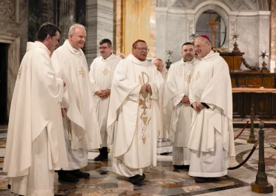 La deuxième journée a commencé par une messe matinale dans l’église Saint‑Stanislas à Rome, après laquelle les membres ont analysé les rapports et discuté des orientations futures de la Fondation. Le thème central fut le prochain Jubilé du 45e anniversaire de la Fondation Vaticane Jean‑Paul II, qui aura lieu du 19 au 22 octobre 2026 à Rome, où se réunit tous les cinq ans l’ensemble de la communauté de la Fondation. Outre le Conseil, les directeurs et les employés, arrivent alors à Rome les sympathisants, donateurs et membres des dizaines de Cercles d’Amis provenant de plusieurs pays du monde. Les célébrations constituent une occasion d’intégration internationale, de rencontres de la diaspora polonaise et de réflexion commune sur l’avenir de l’institution. Lors du précédent Jubilé, plusieurs centaines de membres de la Fondation avaient été reçus au Vatican par le Pape François. Cette année encore, une audience avec le Saint‑Père est prévue. Sont également programmés : une conférence scientifique, une Eucharistie commune dans la basilique Saint‑Pierre, un concert, un gala, l’inauguration d’une plaque commémorative et d’autres initiatives qui seront annoncées dans les prochains mois.